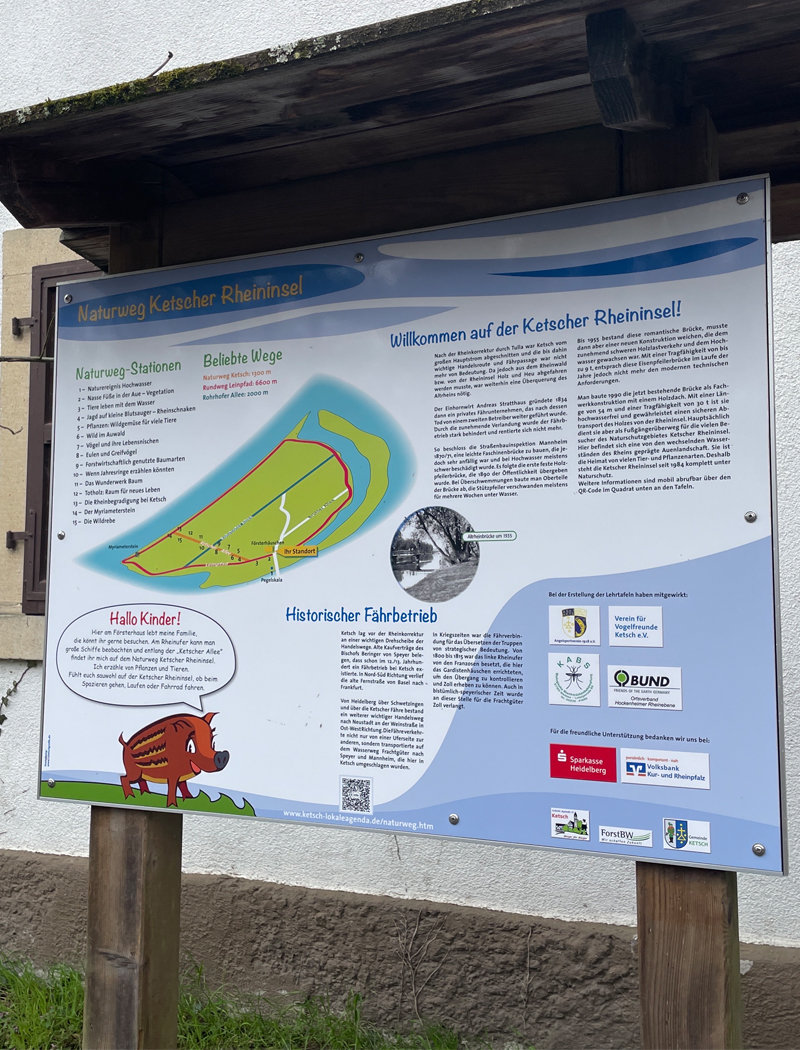 Die Ketscher Rheininsel hatten wir als Ziel ausgesucht. Wie schon bei früheren Wanderungen trafen wir uns am Hugo-Giese-Platz und fuhren gemeinsam zu unserem Startpunkt am Ketscher Anglersee. Zunächst umrundeten wir den kleinen, idyllischen Angler See und gelangten anschließend über die ehemalige Fährbrücke auf die Rheininsel.