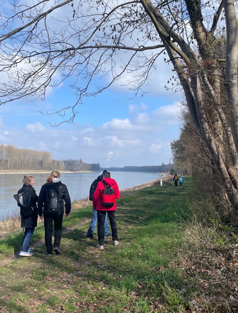 Bei sonnigem Wetter liefen wir entlang des Altrheinkanals in Richtung Rhein.