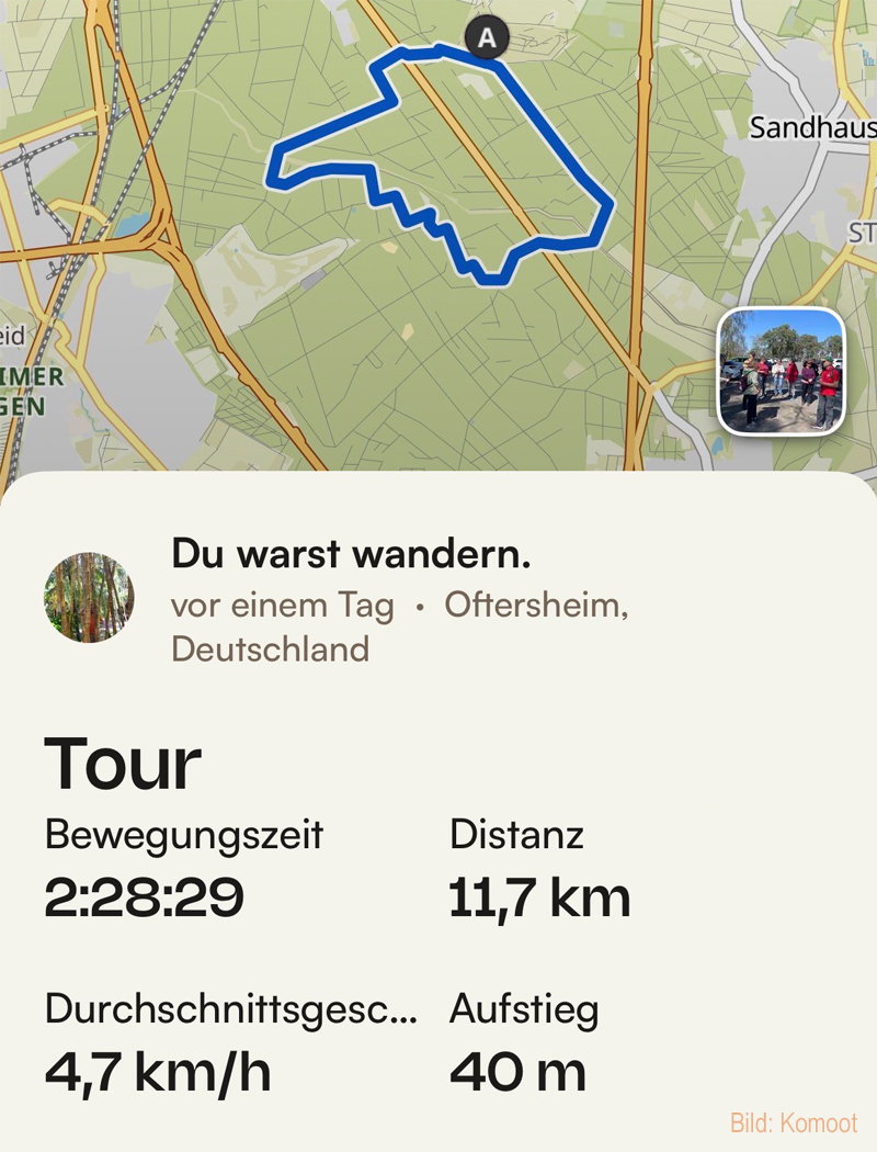 Wetterbedingt fand unsere Wanderung ausnahmsweise bereits am Samstagnachmittag statt, da für den Sonntag eher ungemütliche Bedingungen vorhergesagt waren. So durften wir bei strahlendem Sonnenschein unsere Tour durch die abwechslungsreichen Sanddünen des Hardtwalds bei Oftersheim und Hockenheim erleben.
